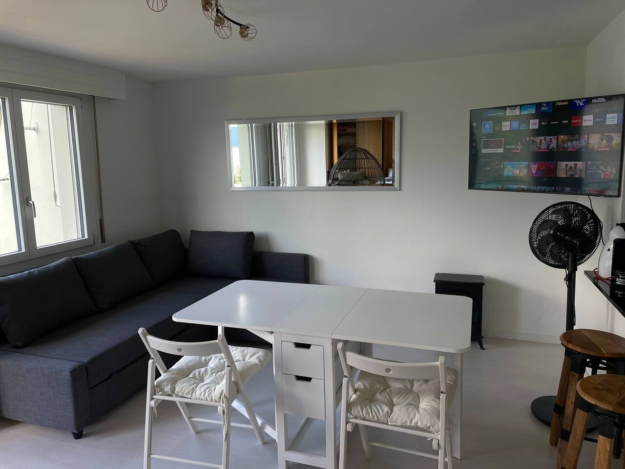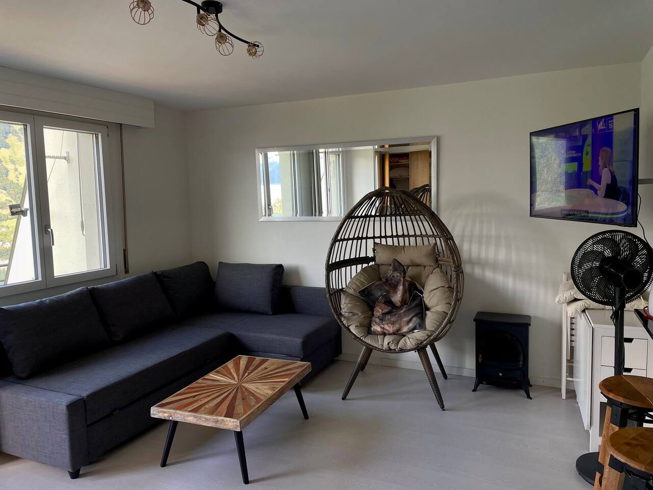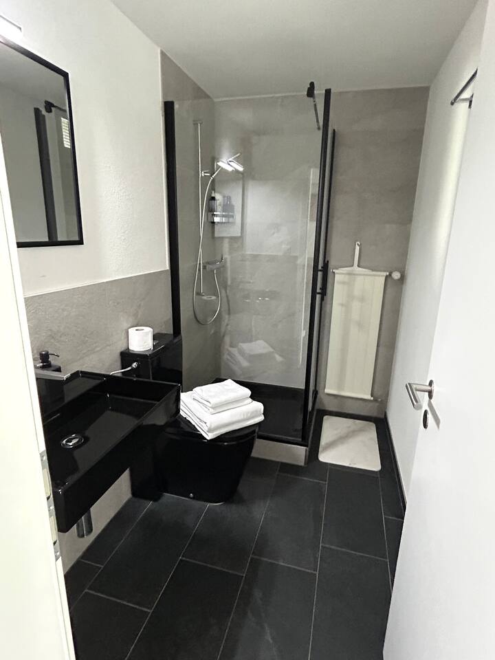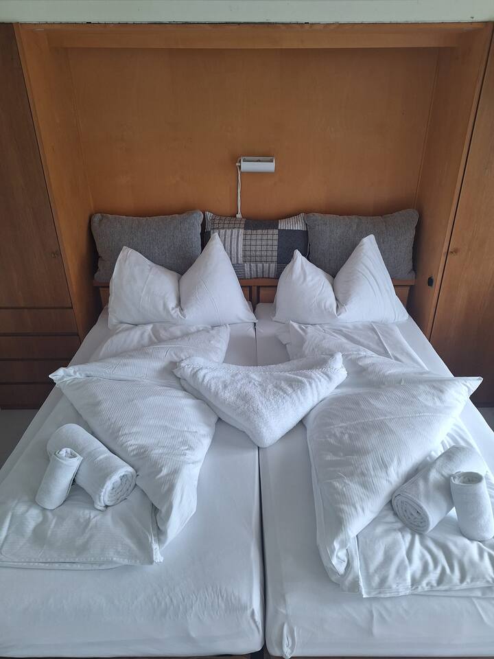Das Wohn- und Schlafzimmer, das Badezimmer, die Terrasse und die Küche stehen ausschließlich den Gästen zur Verfügung. Gemeinsam genutzt werden lediglich das Treppenhaus sowie ein kleiner Gartensitzplatz hinter dem Haus. Die Anreise mit öffentlichen Verkehrsmitteln ist möglich, allerdings erfordert der Weg zur Wohnung einen etwa 20-minütigen Abstieg zu Fuß. Daher wird die Anreise mit dem Auto dringend empfohlen. Ein kostenloser Parkplatz steht zur Verfügung. Die Küche ist mit zwei kleinen elektrischen Kochplatten ausgestattet. Zusätzlich gibt es einen Backofen, eine Kaffeemaschine, einen Raclette-Ofen, eine Fondue-Schale sowie einen Wasserkocher. Die Grundausstattung an Kochutensilien ist vorhanden – für ein aufwendiges Mehr-Gänge-Menü empfiehlt sich jedoch ein Restaurantbesuch. Eine Waschmaschine steht für Gäste nicht zur Verfügung. Bei längeren Aufenthalten können Sie mich gerne direkt kontaktieren, um eine Waschmöglichkeit zu vereinbaren. Die Unterkunft bietet Schlafplätze für maximal 4 Personen, empfohlen sind 2. Es handelt sich um zwei nebeneinander platzierte Einzelbetten, die aus der Wand ausgezogen werden. Zusätzlich steht ein Schlafsofa zur Verfügung. Bei Ankunft sind die Betten frisch bezogen, zudem stehen frische Bade- und Handtücher bereit. Einkaufsmöglichkeiten gibt es im Volg Seelisberg und im Volg Emmetten. Der Volg in Seelisberg hat täglich von 06:30 bis 18:30 Uhr geöffnet, in Emmetten bis 19:30 Uhr.