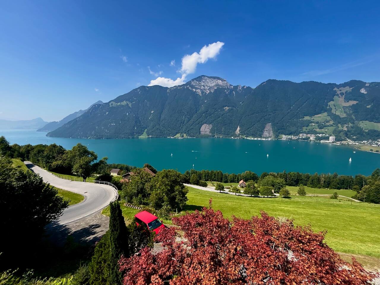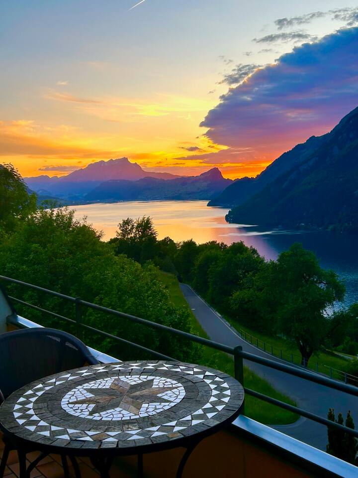 Diese Studio-Wohnung in der Zentralschweiz besticht durch ihre spektakuläre Aussicht auf See und Berge. Sie ist der perfekte Ausgangspunkt für Outdoor-Aktivitäten wie Wandern, Radfahren oder Wintersport in den nahegelegenen Ski-und Wanderngebieten. Wer es entspannter mag, kann die eindrucksvolle Landschaft genießen und zur Ruhe kommen. Schiffverbindung zu mehreren Städten am Vierwaldstättersee. Luzern ist mit dem Auto in nur 30 Minuten erreichbar.